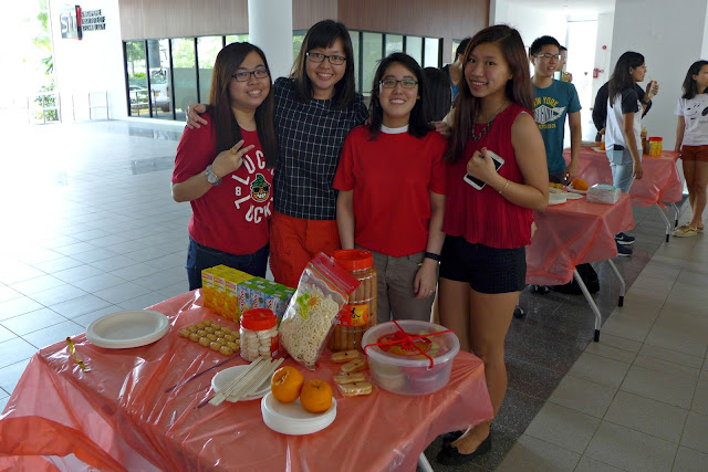 Today, our school organised a mini Chinese New Year celebration for our course. To be honest, I was not expecting much. I was still picturing 100 of us standing around a big table with just 1 louhei in the middle, and us "air louhei-ing" because we cannot reach anything.
